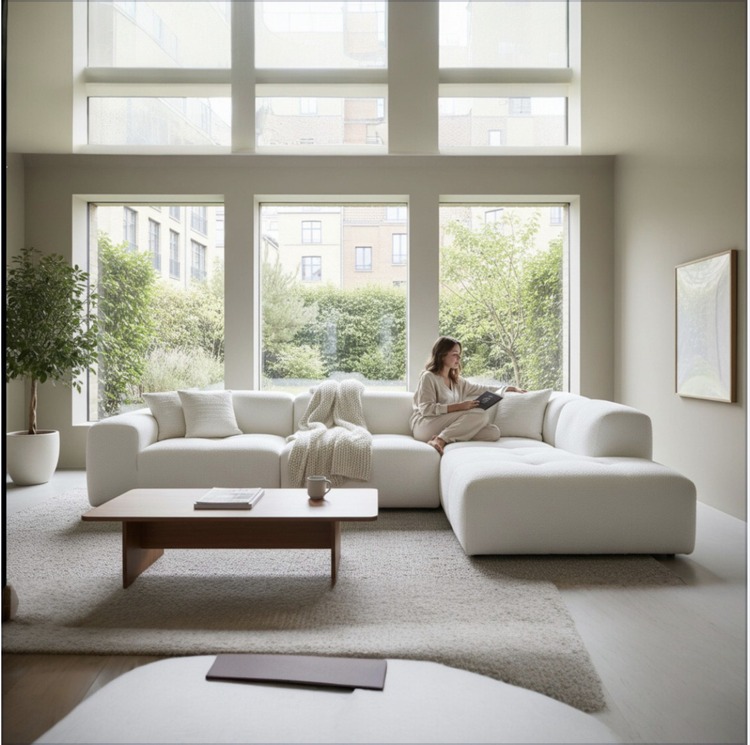 “A modern corner sofa designed for ultimate comfort and style. With its spacious seating, soft layered cushioning, and elegant rounded lines, it creates the perfect place to relax, unwind, and enjoy everyday moments. Crafted with premium materials, it blends contemporary design with cozy sophistication—making it a standout centerpiece for any living space.” Fully Sectional pieces.